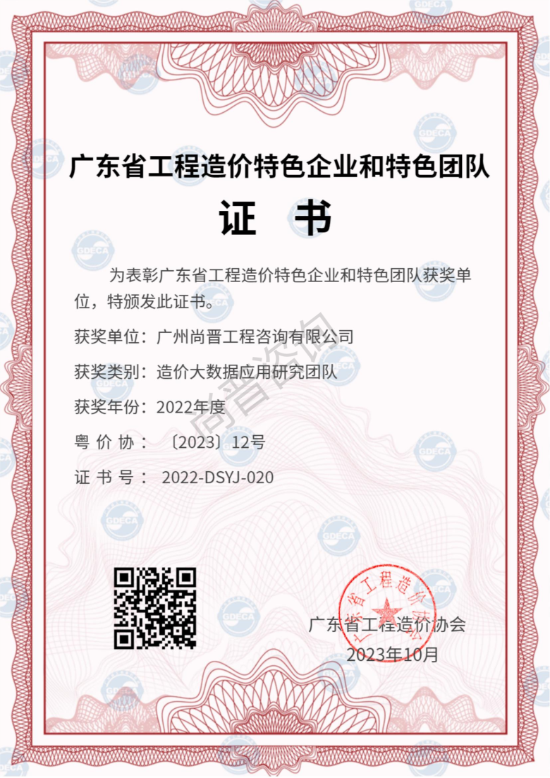 廣州尚晉工程咨詢有限公司(以下簡稱“尚晉咨詢“) 。具有建設部頒發的甲級工程造價咨詢資質、國家發展改革要頒發的工程項目管理資格證及廣東省工程建設招標代理資信A,是廣東省首批搭建大數據咨詢平臺進行全過程咨詢管控模式的公司之一,擔任廣東省工程造價協會理事單位、廣州市造價協會理事單位、廣東省建筑業協會理事單位等要職。     廣州尚晉工程...